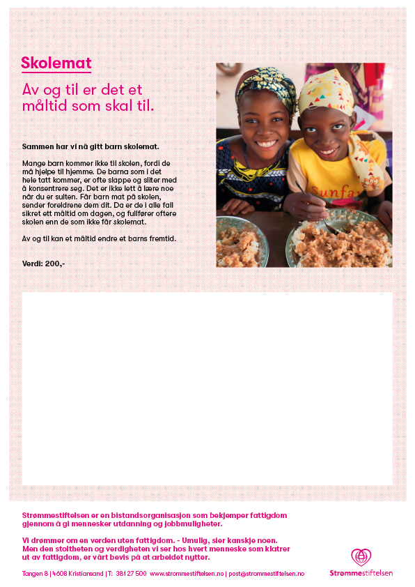 * Dette er en symbolsk gave. Pengene fra denne gaven går til å støtte dem som til enhver tid trenger det aller mest.