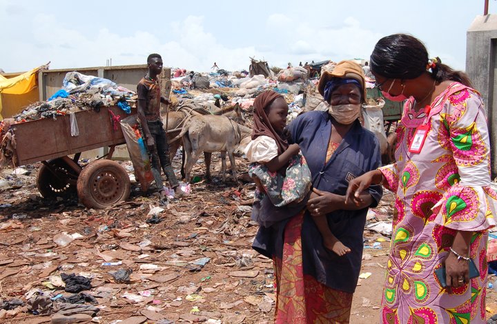 På armen bærer Maimouna Doumbia et av barna sine. Rokiatou Dembelé snakker med henne og spør om hun kan tenke seg å plukke plast hun kan selge til prosjektet som snart også skal startes som et pilotprosjekt i hovedstaden Bamako. Og det kan hun.